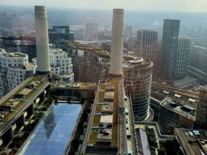 ➡️Dziś jest to ciekawe, tętniące życiem miejsce, w którym oprócz 📍sklepów i 📍restauracji są przestrzenie publiczne, 📍kina, a nawet nietypowy lokal ze 📍stołami do ping ponga. Co ważne, na każdym kroku widać ślady historii tego obiektu. ➡️Jest tam wystawa o jego historii, a także niesamowita możliwość wjazdu windą na szczyt jednego z kominów, z którego szklanej kopuły jest widok na całe historyczne centrum Londynu. 📌”Kopara opada”, serio. Nie jest to tania akcja (bilet rodzinny na 4 osoby kosztował 75 funtów), ale to jedna z tych atrakcji, które zawsze będziemy pamiętać. Jeśli możecie – warto! Bilety kupione z wyprzedzeniem online są nieco tańsze niż w dniu wizyty na miejscu. Tuż obok jest fajny, bezpłatny plac zabaw. Dla fanów samolotów atrakcją będę liczne przelatujące tu z i na pobliskie Heathrow samoloty.