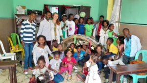 dzieci ulicy w slumsie w Nairobi. Tuż po obronie inżyniera podjęłam decyzję o wyjeździe. Od decyzji do upragnionego wyjazdu minęło jeszcze trochę miesięcy ze względu na konieczne przygotowanie. W kwietniu 2016 roku wylądowałam w Etiopii i zamieszkałam ze wspólnotą ŚMK w Auasie. Z początku nie było dla mnie do końca jasne, czym będę się zajmować, ale jeszcze w trakcie nauki języka amharskiego zaczęłam się angażować w różne działania w Kościele, głównie z młodzieżą, ale nie tylko. Później zaczęłam pracować w szkole należącej do Misjonarek Miłości. Była to taka zerówka dla bardzo biednych dzieci i uczyłam tam angielskiego. Pomagałam też komboniankom w szkole zawodowej i w więzieniu dla